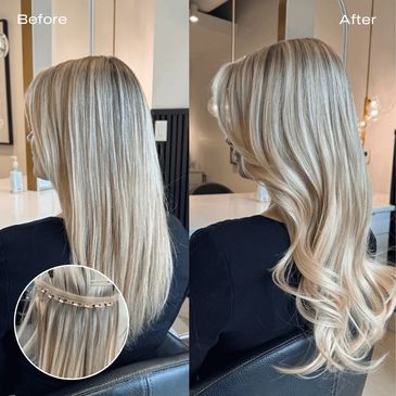 Keratin bond hair extensions, also known as keratin bean extensions, are applied strand by strand for the most natural and customizable results. Each extension is bonded using high-quality keratin, allowing the hair to move and blend just like your own.