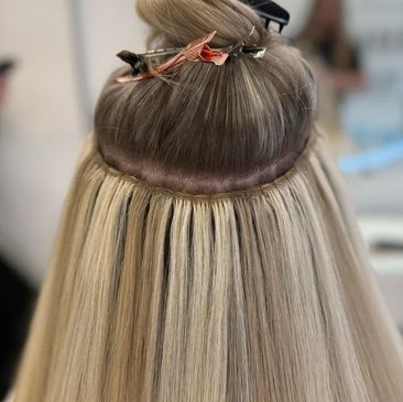 Our luxury weft hair extensions are expertly applied to create soft, full, and natural-looking hair. Designed for comfort and long-lasting wear, wefts are perfect for clients who want maximum volume with an undetectable blend.